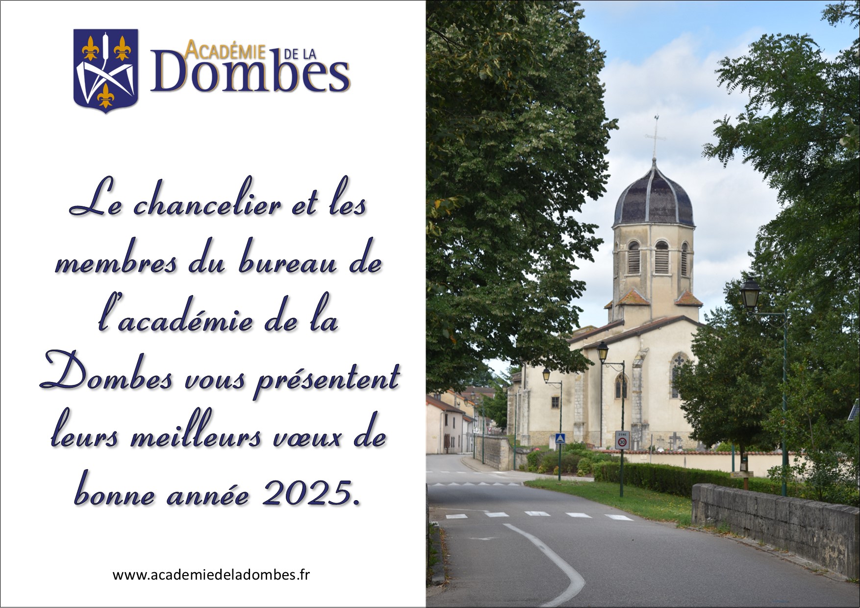Le Chancelier et les membres du bureau de l’académie de la Dombes vous présentent leurs meilleurs vœux de bonne année 2025.